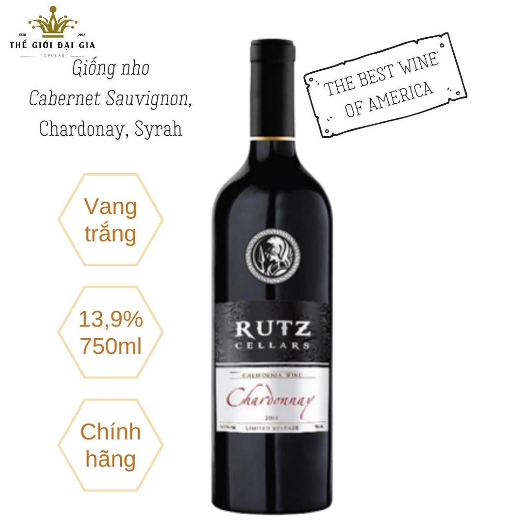 Rượu vang trắng RUTZ CHARDONNAY 13,9% - Mỹ là chai vang trắng phiên bản giới hạn nổi tiếng của Mỹ được phân hạng A.V.A được nhiều người lựa chọn trong các bữa tiệc hải sản.